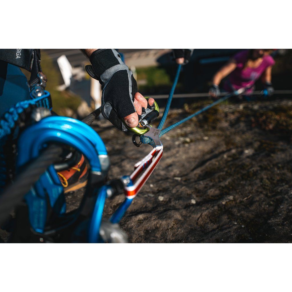 Jistící segment je založen na osvědčeném principu blokovacího efektu a umožňuje snadné a plynulé povolování i případné spouštění druholezce. Odvíjení lana během výstupu je maximálně pohodlné, s minimálním odporem lana (potřebná síla pouze cca 1 kg v tahu), a prvolezci tedy nijak neztěžuje postup via ferratou.