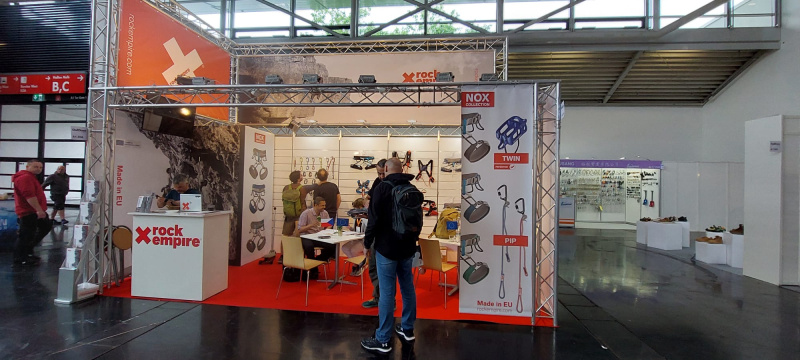 Na stánku jste mohli vidět nejnovější produkty ROCK EMPIRE, jako je nový úvazek NOX v moderním designu a nových barevných provedeních. Dále jsme představili úvazek pro speleo aktivity Speleo D spolu s prsním úvazkem Speleo Top, novou sportovní helmu Galeos Evo a mnohé další produkty.